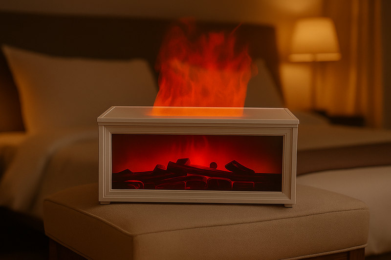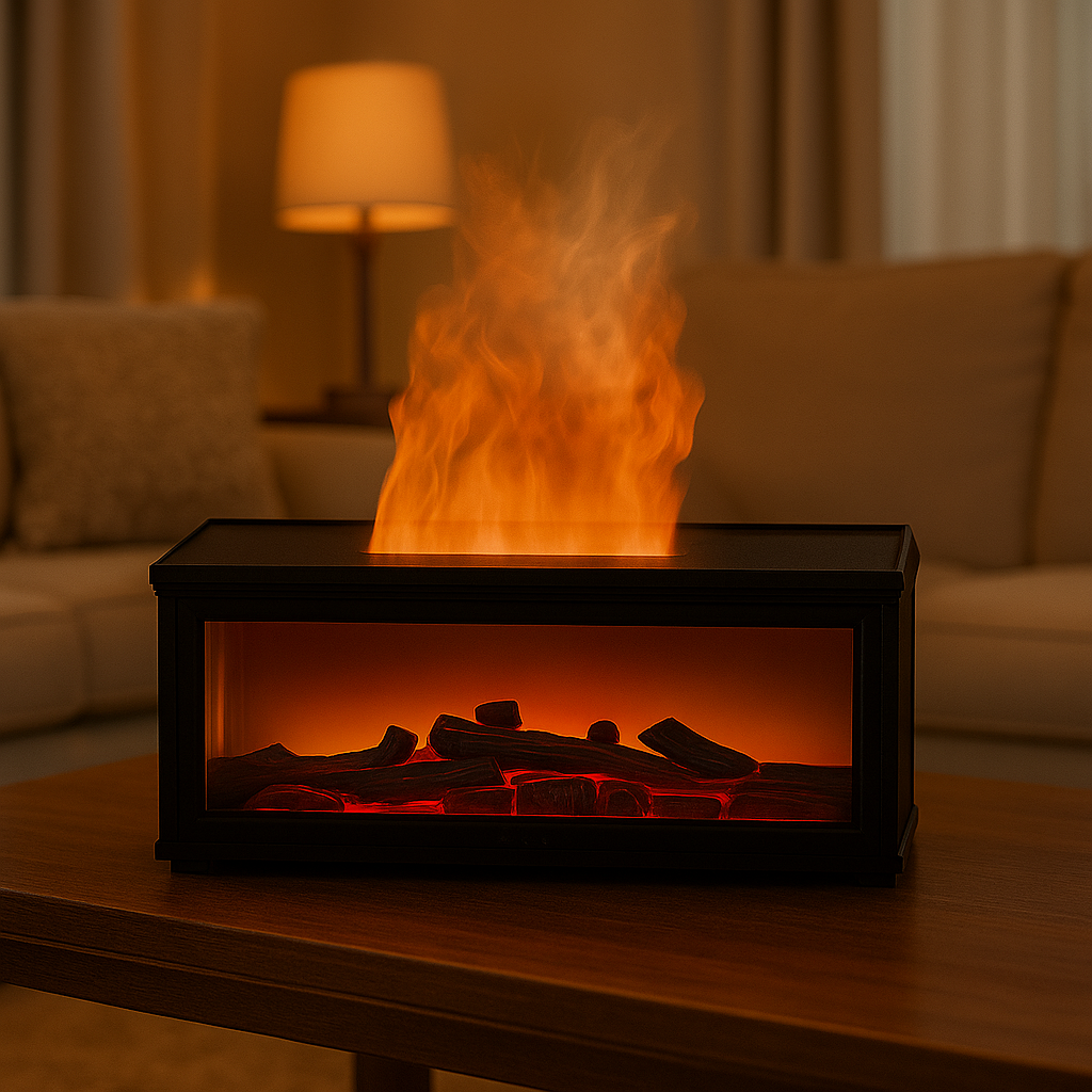 Zdecydowanie tak! 🔥 Dyfuzor wykorzystuje zaawansowane diody LED, które tworzą realistyczny, dynamiczny efekt płonącego kominka. Delikatne migotanie światła i mgiełka unosząca się z góry sprawiają, że wygląda jak prawdziwy ogień – ale całkowicie bezpieczny i chłodny w dotyku.